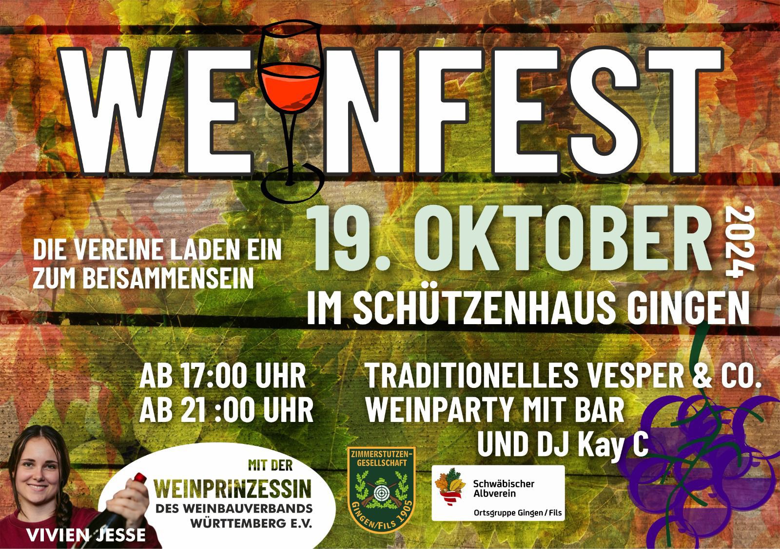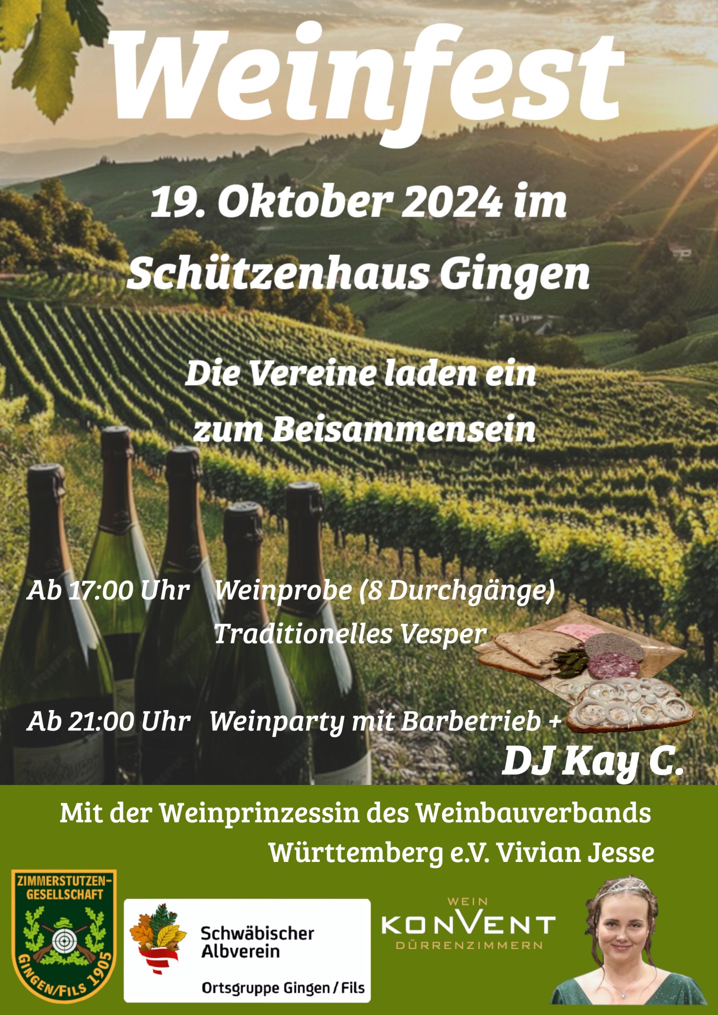 Genießen Sie die ausgewählten Weine vorgestellt und kredenzt von der Weinprinzessin Vivian Jesse in der Schießhalle des Schützenhaus in Gingen.